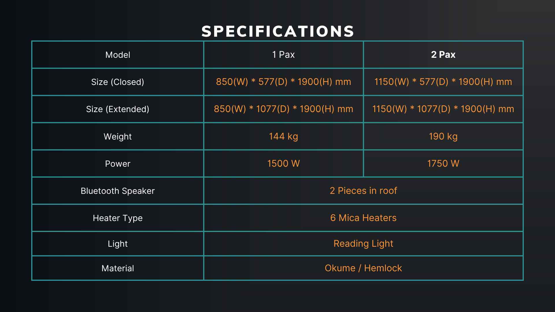 Despite its streamlined form, it delivers full-bodied heat via low-EMF mica panels—known for consistent, even thermal distribution without hotspots or high radiation output. These heaters create a controlled environment optimised for heat therapy sessions ranging from 15 to 30 minutes.